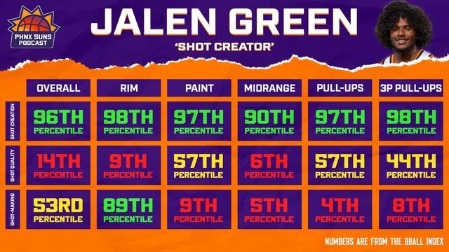 杰伦-格林一直以来都是一个低效的得分手,他的总命中率、油漆区命中率、上篮命中;率、三分命中率、中距离命中率都很糟糕,进入季后赛后更为拉胯,场均只有13分,命中率37%,三分命中率29.5%。