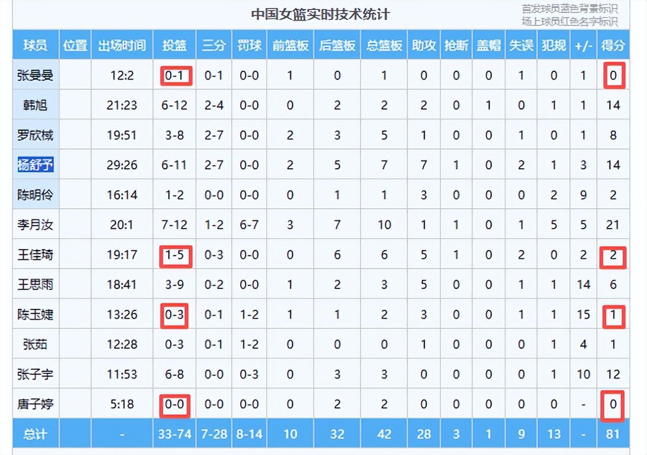 中国队昨晚打得不好看,第一节还落后对手,赢得不够解气,主要原因是后卫线不给力,锋线能得分的人也不多,只依靠内线进攻也是战术十分单一。可以说中国队除了中锋仍具备世界级水平外,后卫线和锋线新人差的不是一丁半点,可以说全是废材。首发控卫张曼曼全场不得分,王佳琦和陈玉婕全场只得2分和1分,三大后卫合砍3分,锋线唐子婷全场0分,真是辣眼睛。
